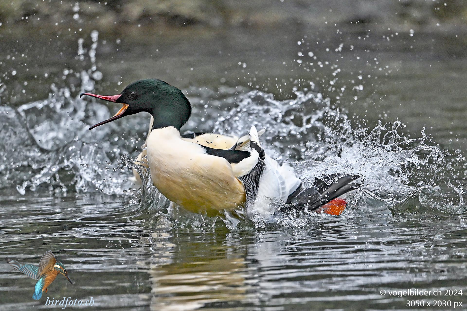 Action bei den Gänsesägern im Schanzengraben