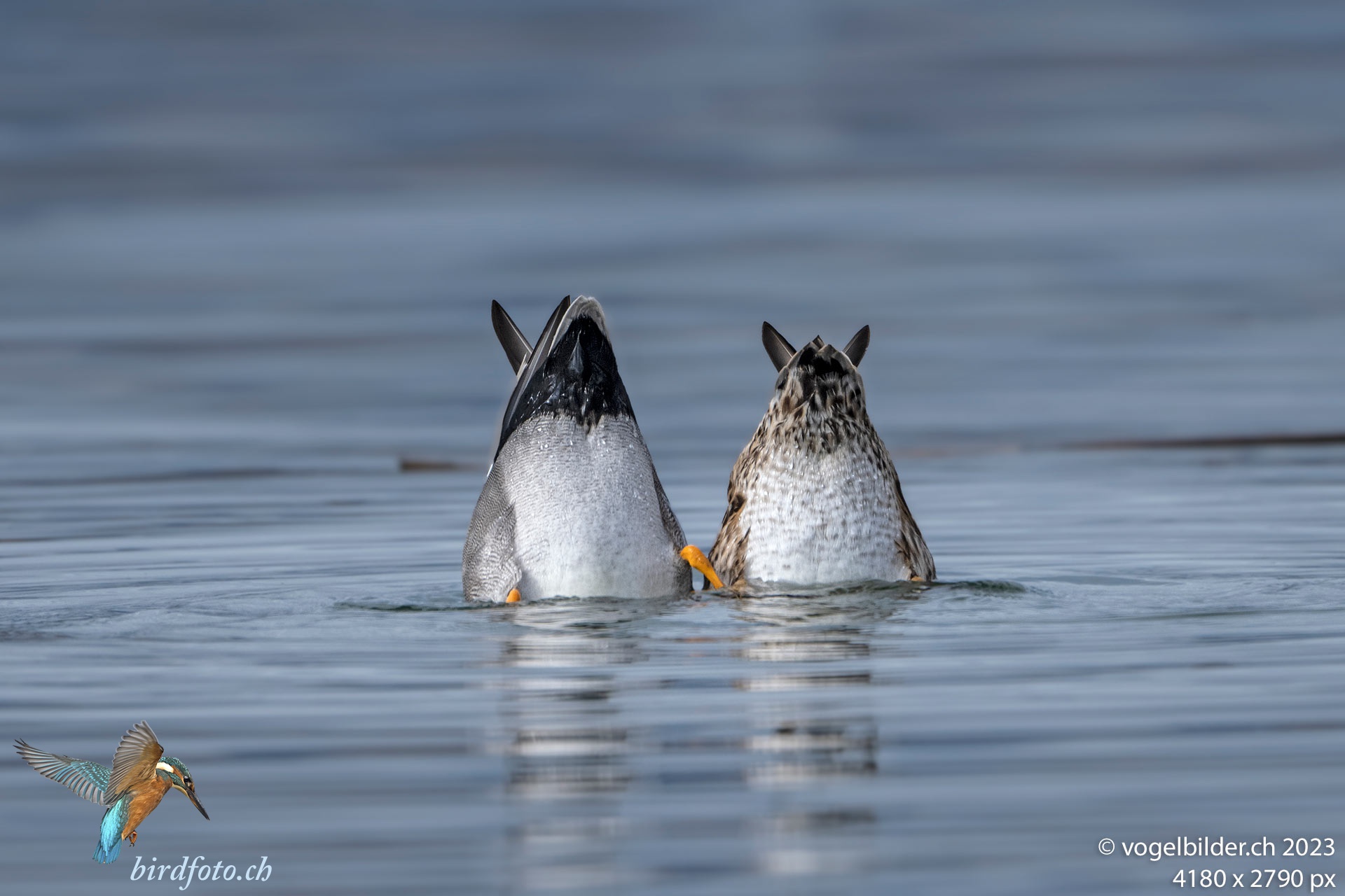 Gemeinsam tauchen, schwimmen, fressen, das sind verpaarte Schnatterenten im Stampf bei Jona