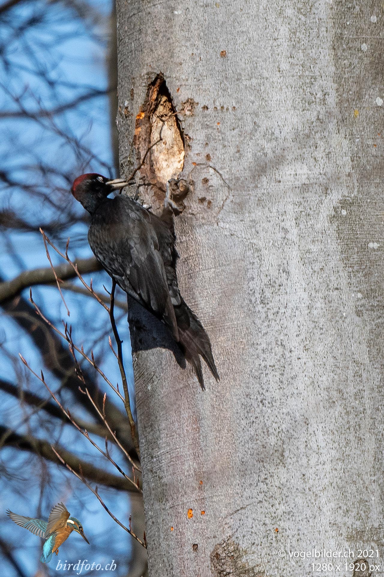 Die Schwarzspechte sind am Löcher hacken (wenn nur dieser blöde Zweig immer im Weg wäre..), rufen laut, trommeln.