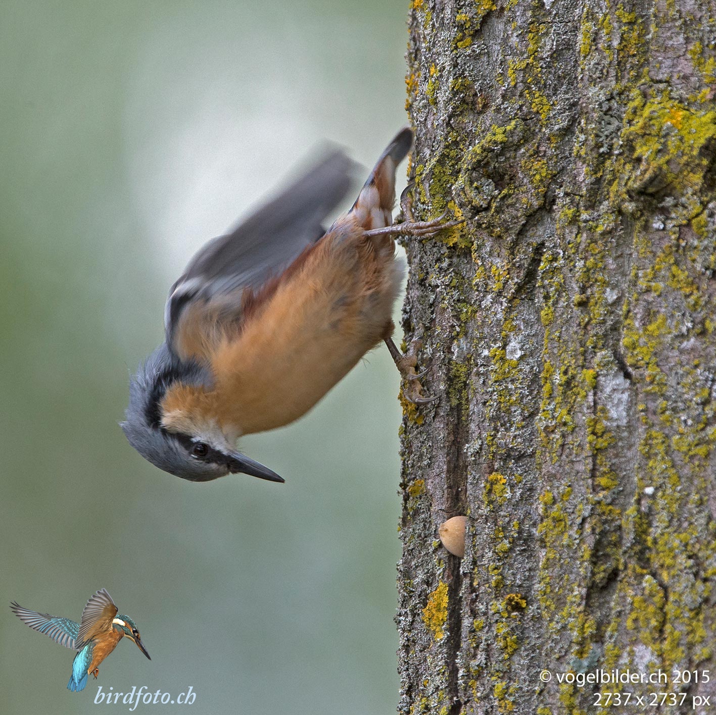 Kleiber150903152053Der Kleiber hatte eine Haselnuss gefunden. In einer Spechtschmiede hackte er - allerdings ohne ersichtlichen Erfolg - darauf herum.