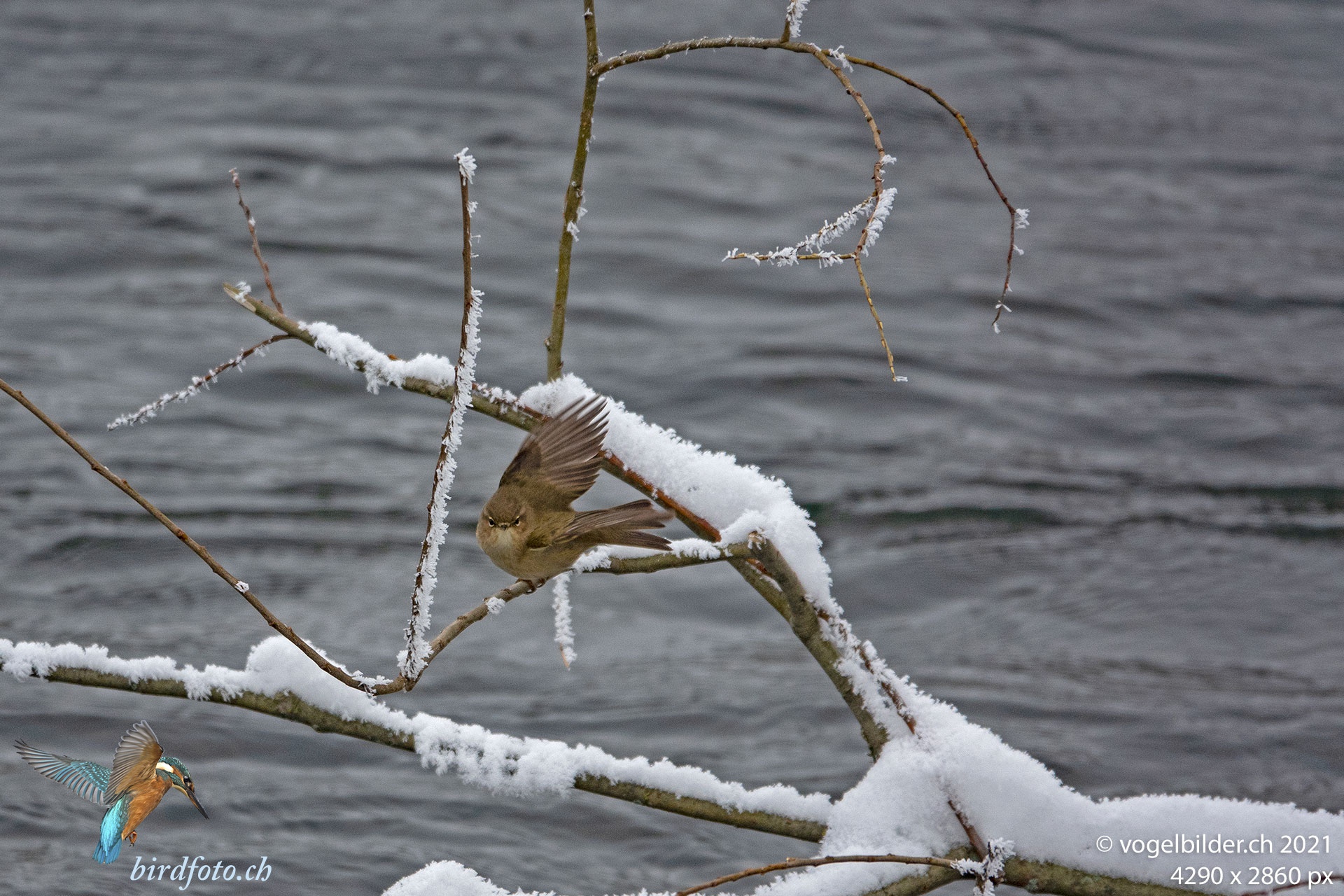 Fällt viel Schnee wie am 15. Januar 2021, wird es für die überwinternden Zilpzalpe schwierig, sie ziehen sich wohl die meisten an die nicht eingeschneiten Flussufer zurück.