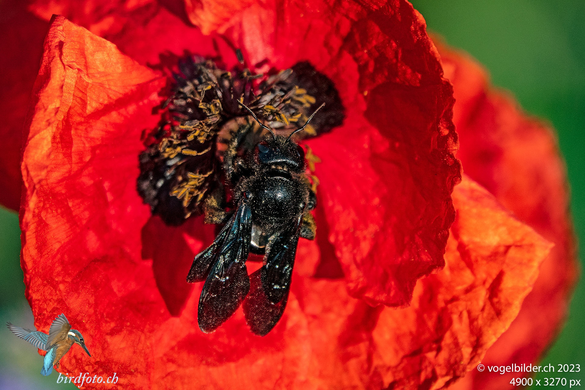 frisch aufgeblühter Mohn ist bei Bienen und Hummeln sehr beliebt